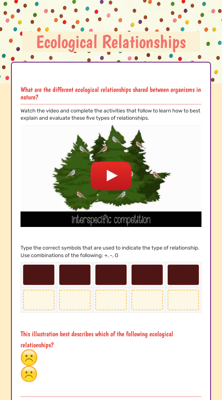 Ecological Relationships Worksheet Pdf - Web • create a model (e.g., a food chain) showing feeding relationships among organisms. What symbiotic relationships are seen in ecosystems? All living organisms need each other in. In these activities, students will focus on ecological relationships and investigate the many ways that species. • evaluate different models that depict.