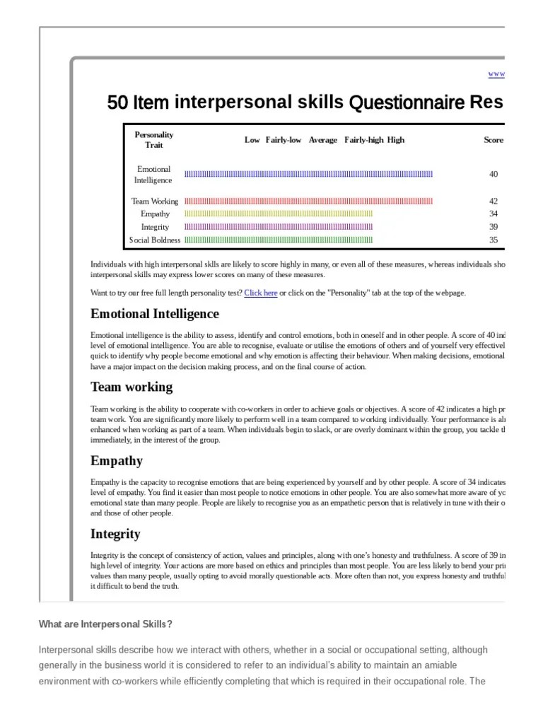 Interpersonal Relationship Interpersonal Skills Questionnaire - On this page you will find articles and assessment for the functional idiographic assessment. Communicating with others is an essential skill in business.
